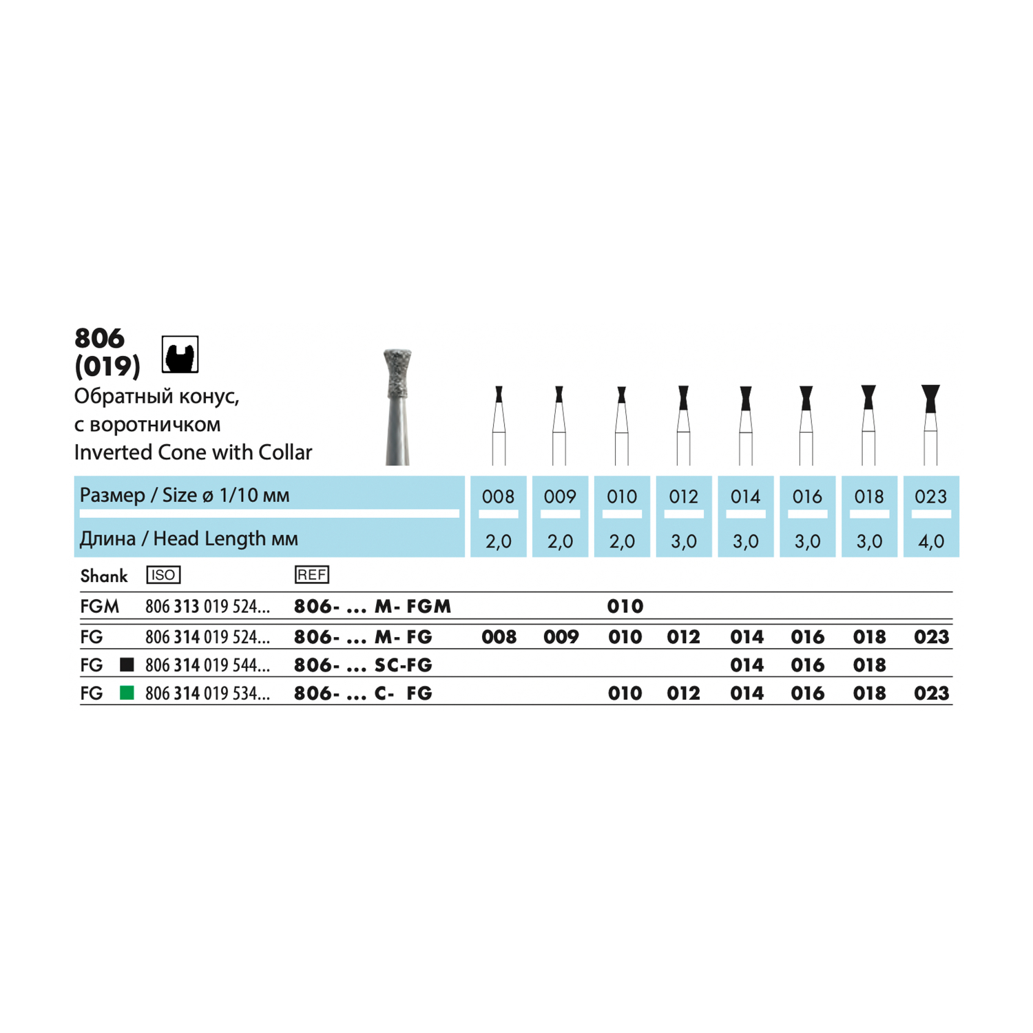 806 - бор алмазный NTI, обратный конус, с воротничком