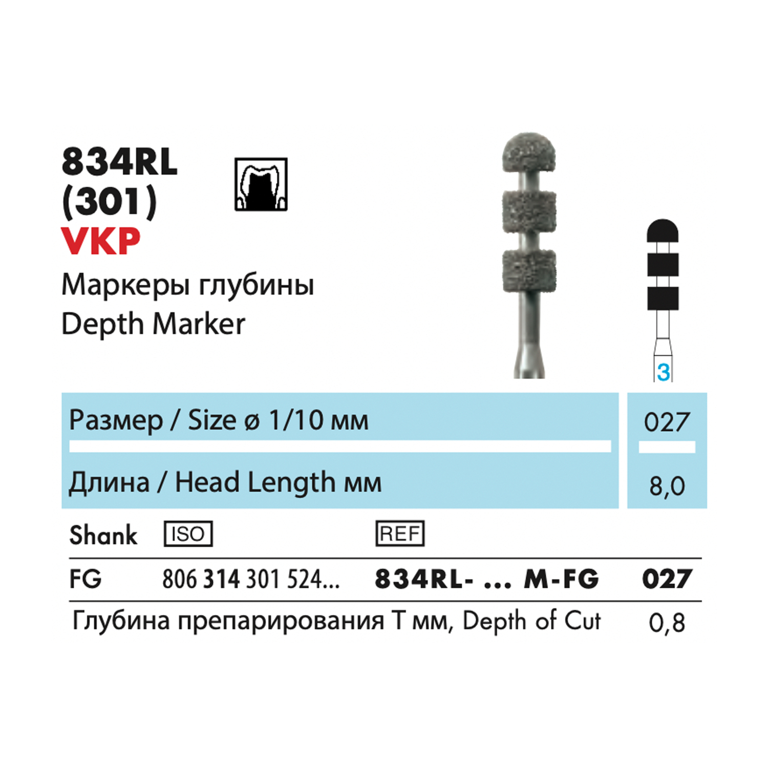 834RL - инструмент алмазный NTI, маркер глубины