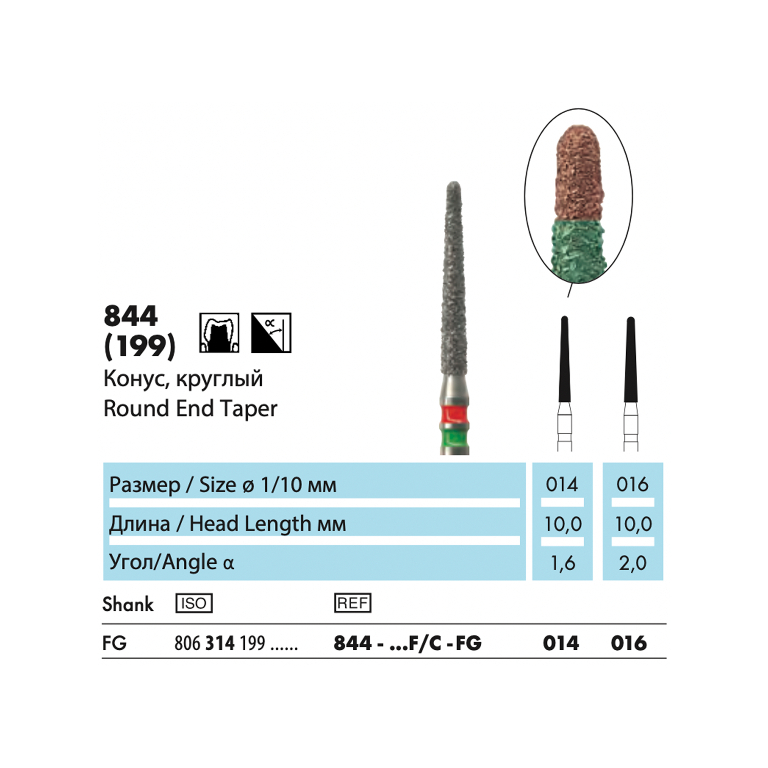 844 - бор алмазный NTI, конус, круглый, двойной дисперсности