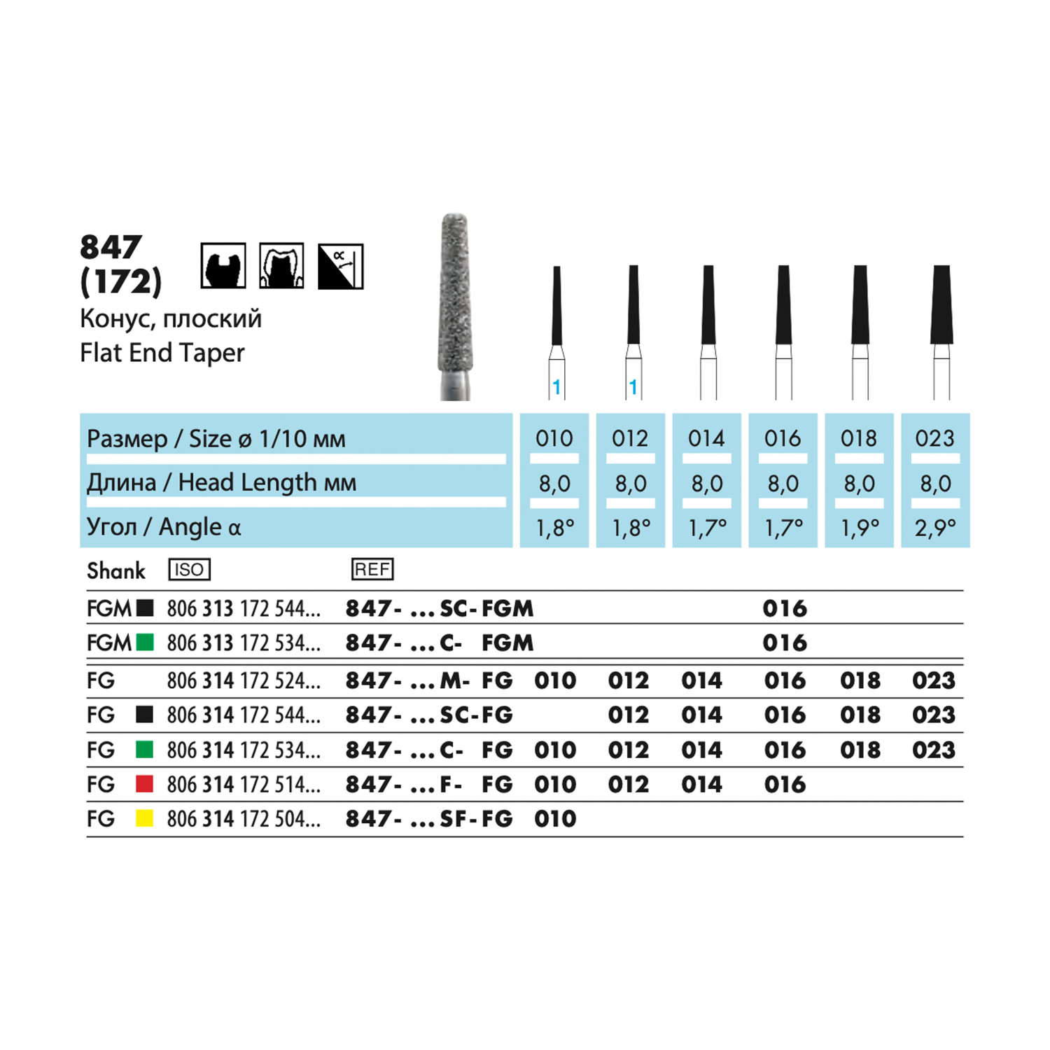 847 - бор алмазный NTI, конус, плоский