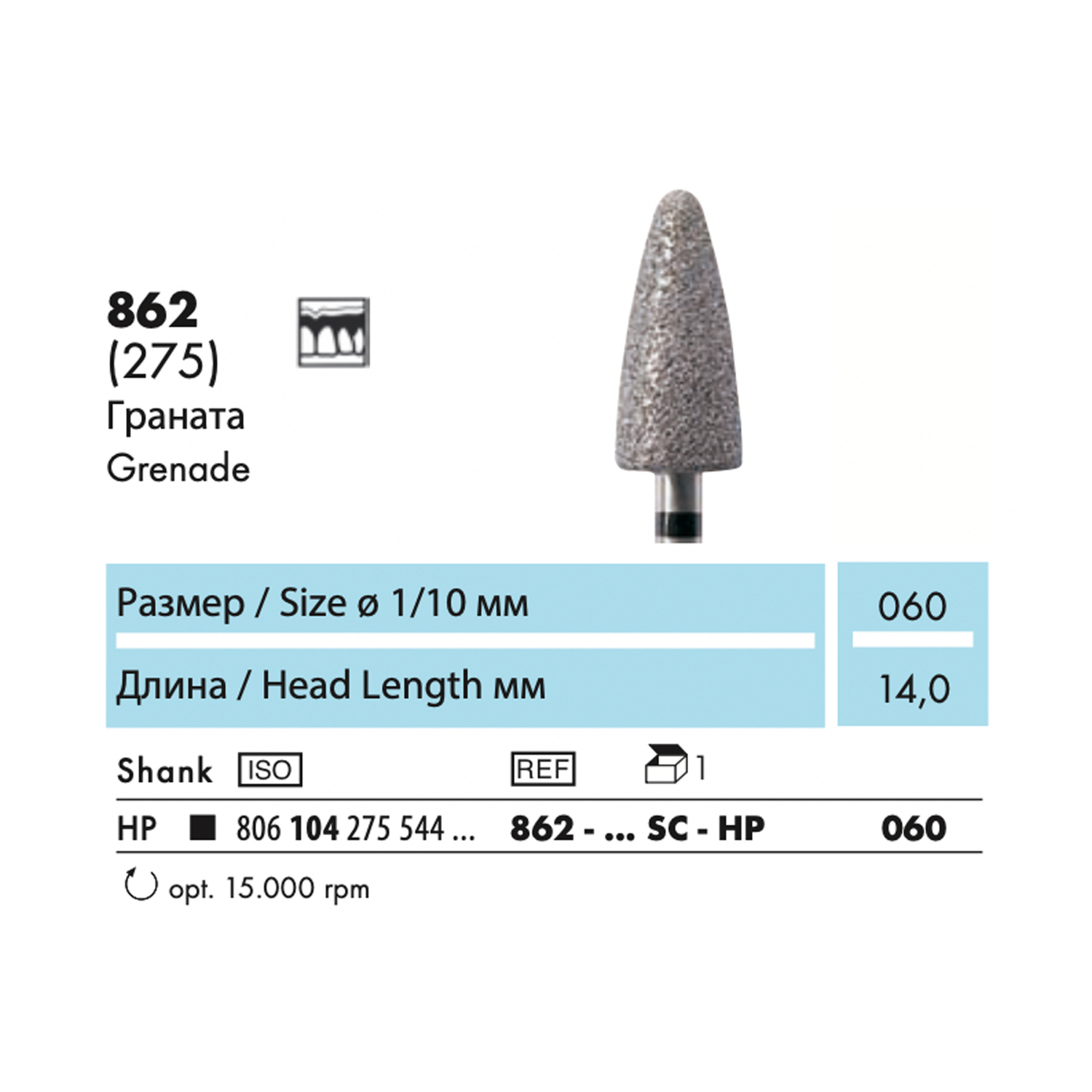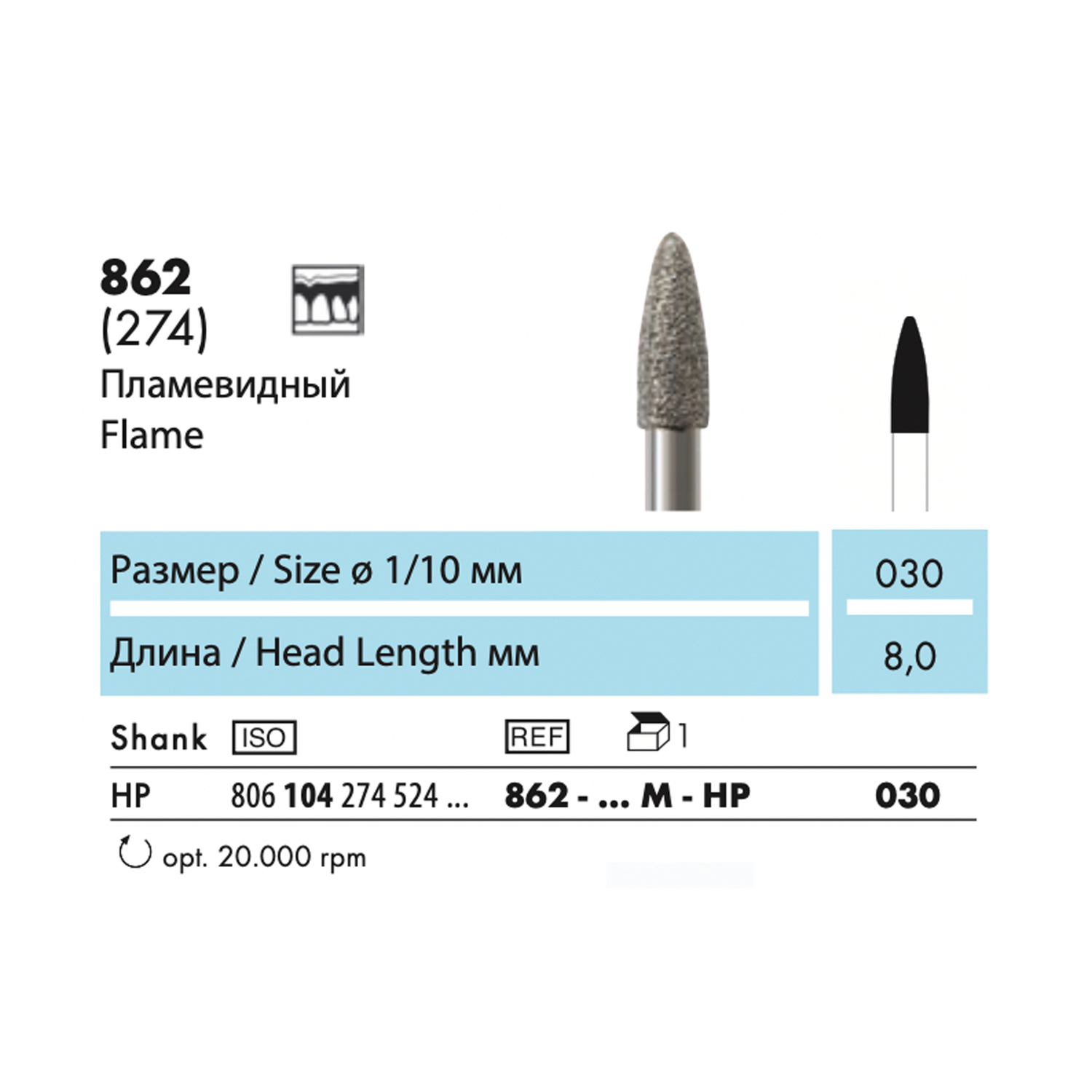 862-HP - бор алмазный NTI, пламевидный