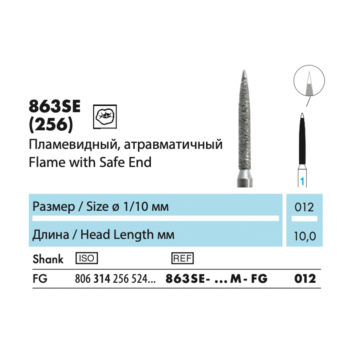 863SE - бор алмазный NTI, пламевидный, атравматичный