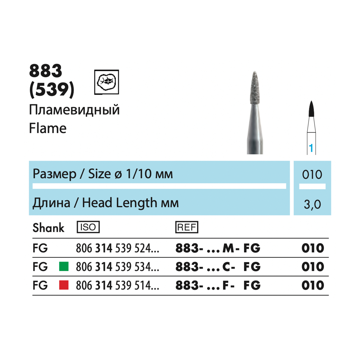 883 - бор алмазный NTI, пламевидный