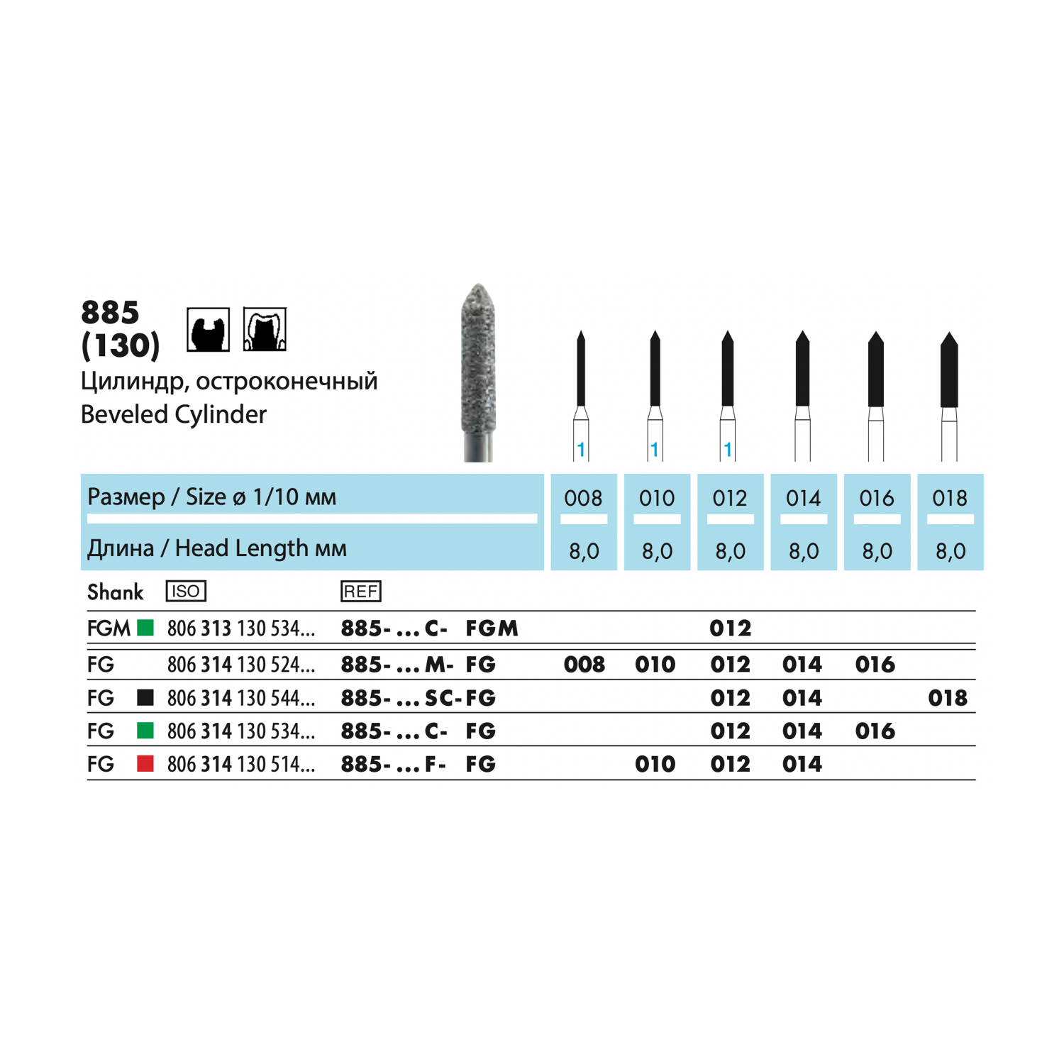 885 - бор алмазный NTI, цилиндр, остроконечный