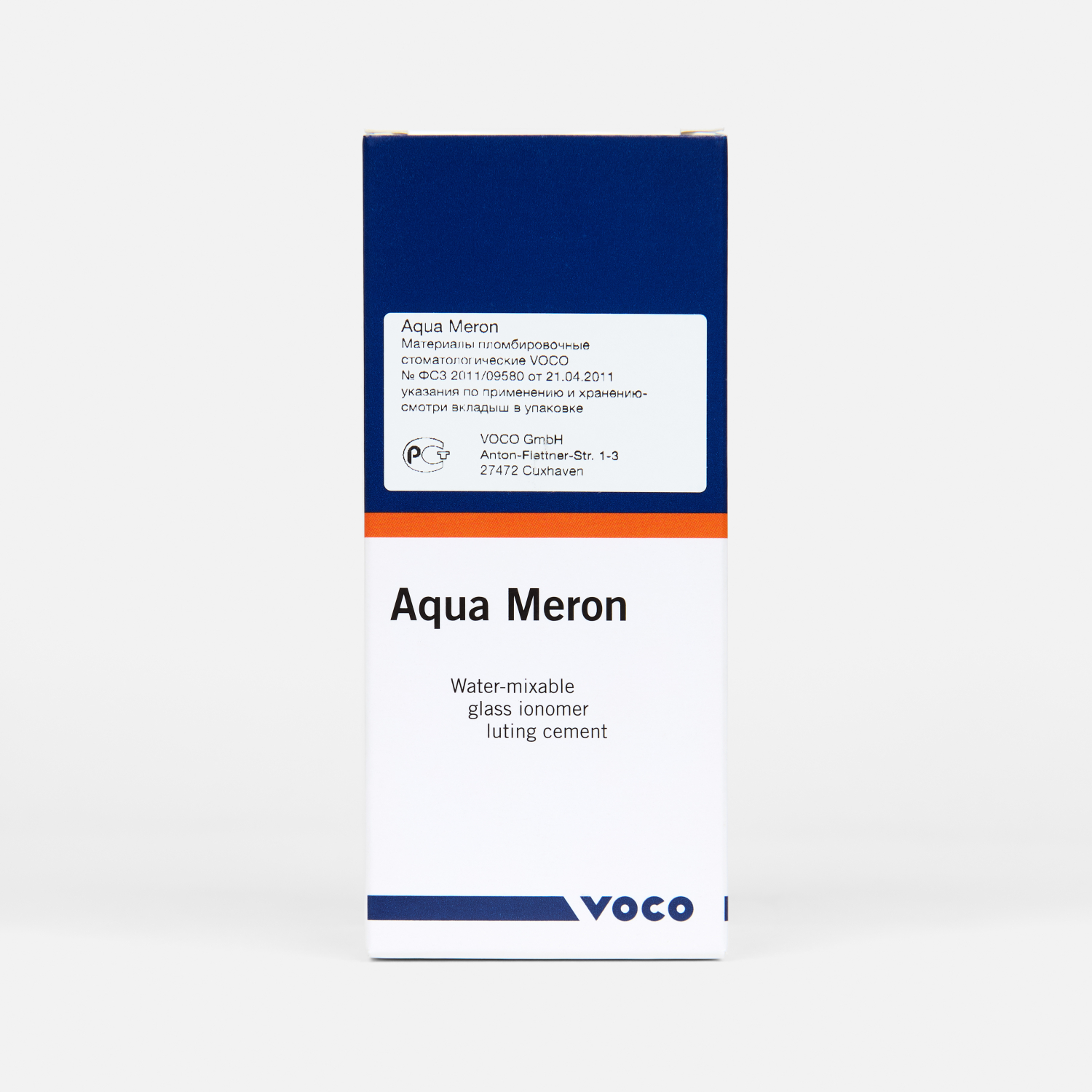 Стеклоиономерный цемент Voco Aqua Meron обладает высокой адгезией и предназначен для постоянной фиксации коронок и мостовидных протезов на металлическом каркасе, а также цельнокерамических реставраций. Может применяться для прецизионной фиксации штифтов, вкладок. и ортодонтических конструкций. Поставляется в виде порошка для замешивания на воде.