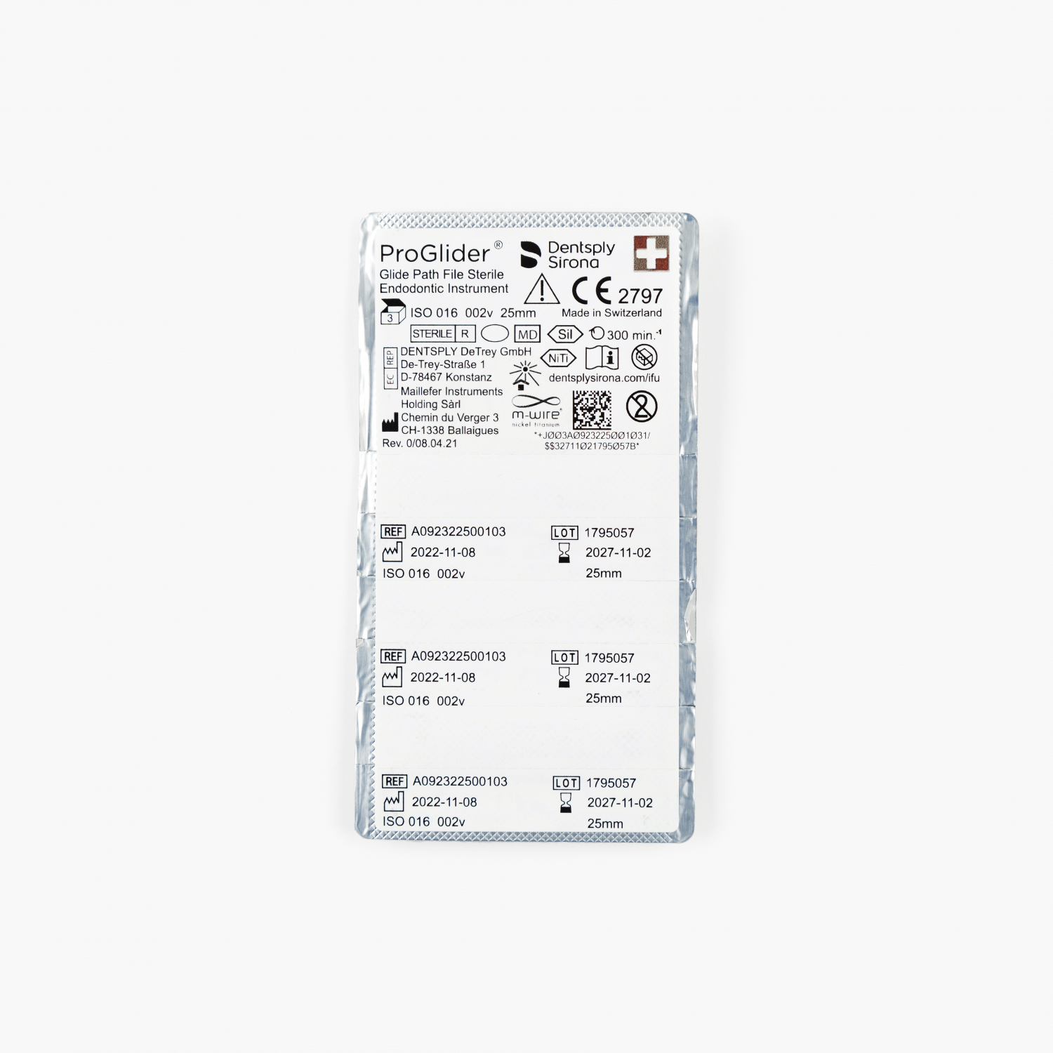 Машинные файлы Dentsply ProGlider 02 одноразового применения, поставляются в стерильной упаковке.