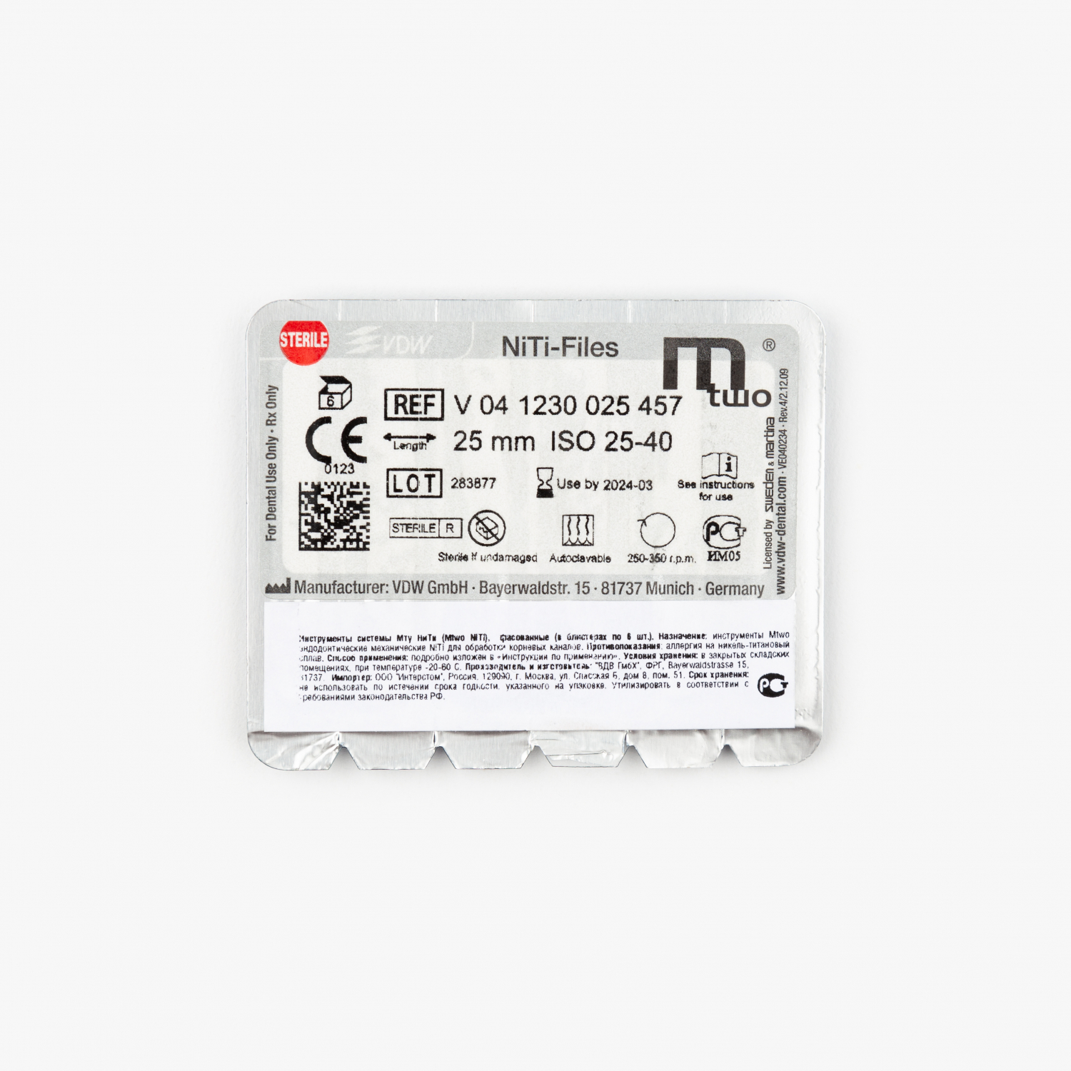 Файлы машинные VDW Mtwo №2 x 25/.06, 21/25 мм, 30/.05, 35/.04, 40/.04, 25/.07, 16/25 мм (6 шт)