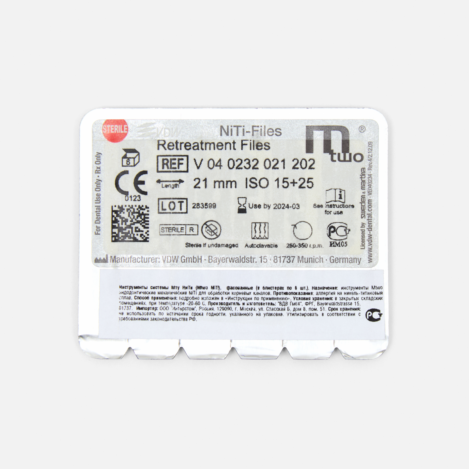 Файлы машинные VDW Mtwo №3 x R 15/.05, R 25/.05, 16/21 мм (6 шт)
