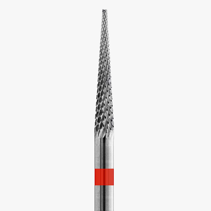 Конусообразная форма фрезы № 21013 позволяет обрабатывать поверхности сложного профиля. Прочный хвостовик закрепляется в наконечнике, обеспечивая комфортную работу, не допуская биения.