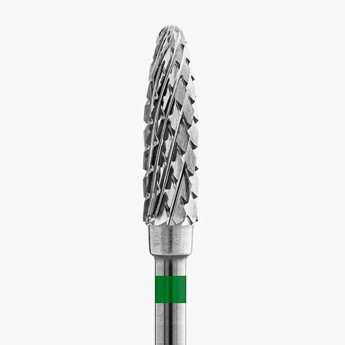 Головка фрезы № 41234 изготовлена из специального высокопрочного сплава, что обеспечивает долговечность инструмента. Инструмент маркируется зеленым цветом, хвостовик надежно удерживается в ротационном наконечнике.