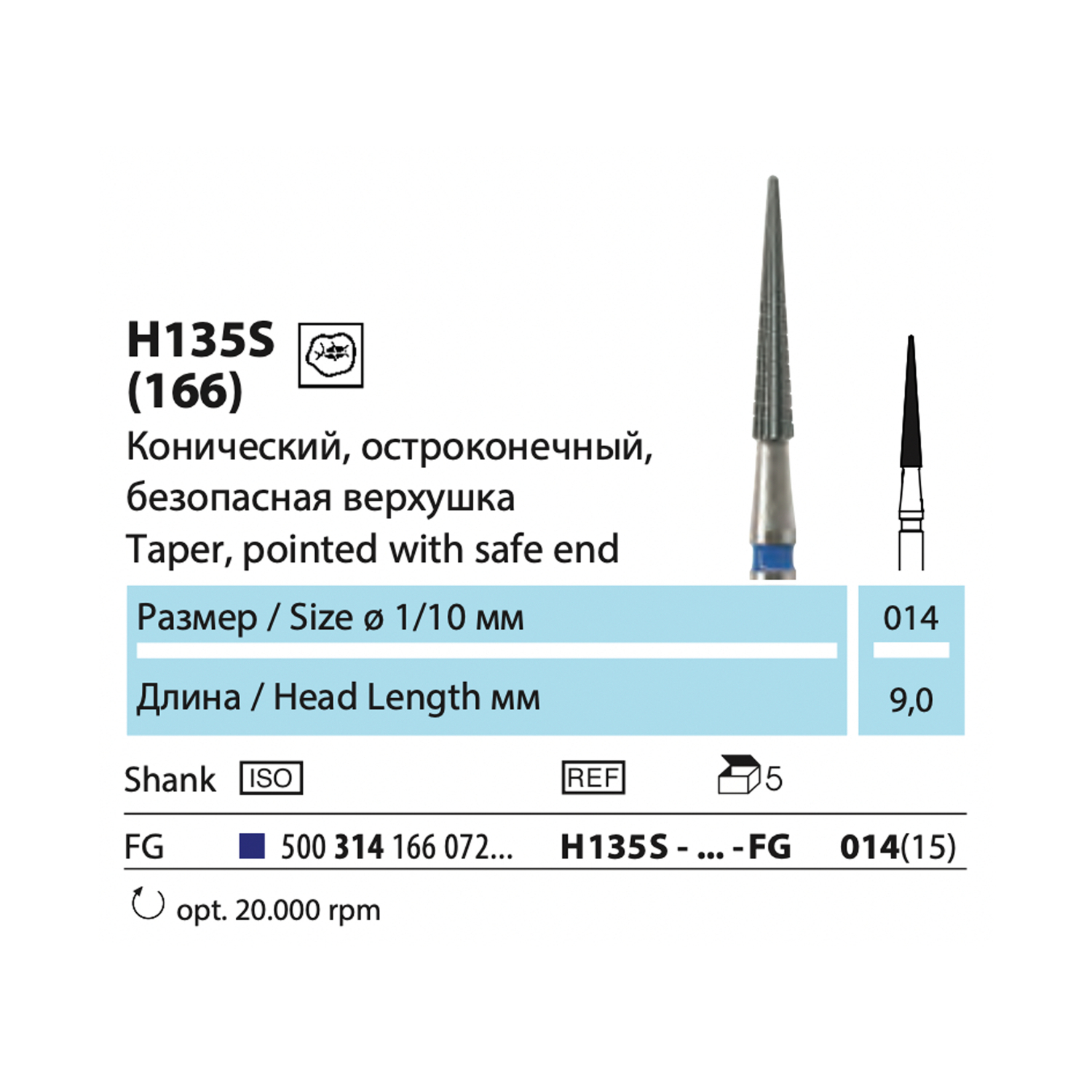 H135S - финир твердосплавный NTI, конический, остроконечный, атравматичный