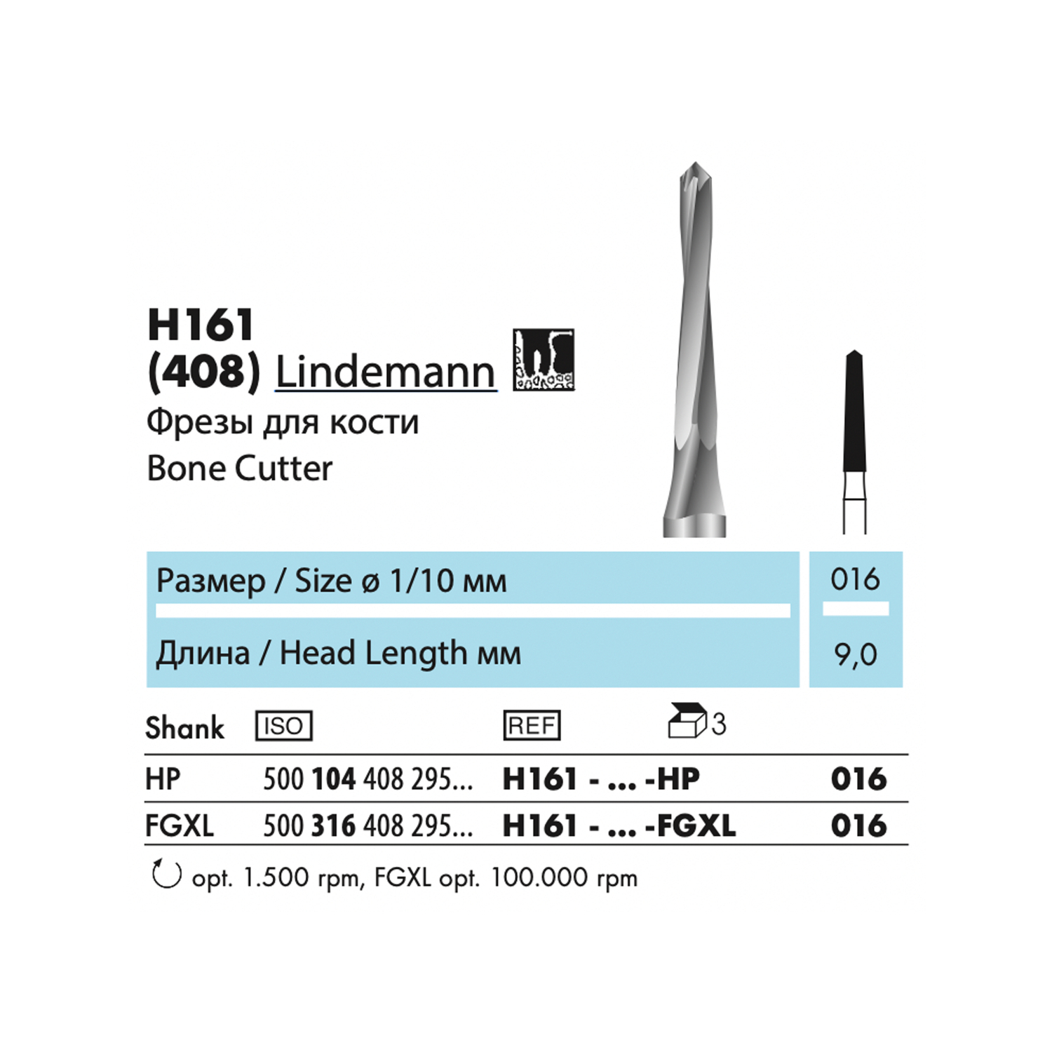 H161 - бор твердосплавный NTI Lindemann, хирургический, конус, длинный