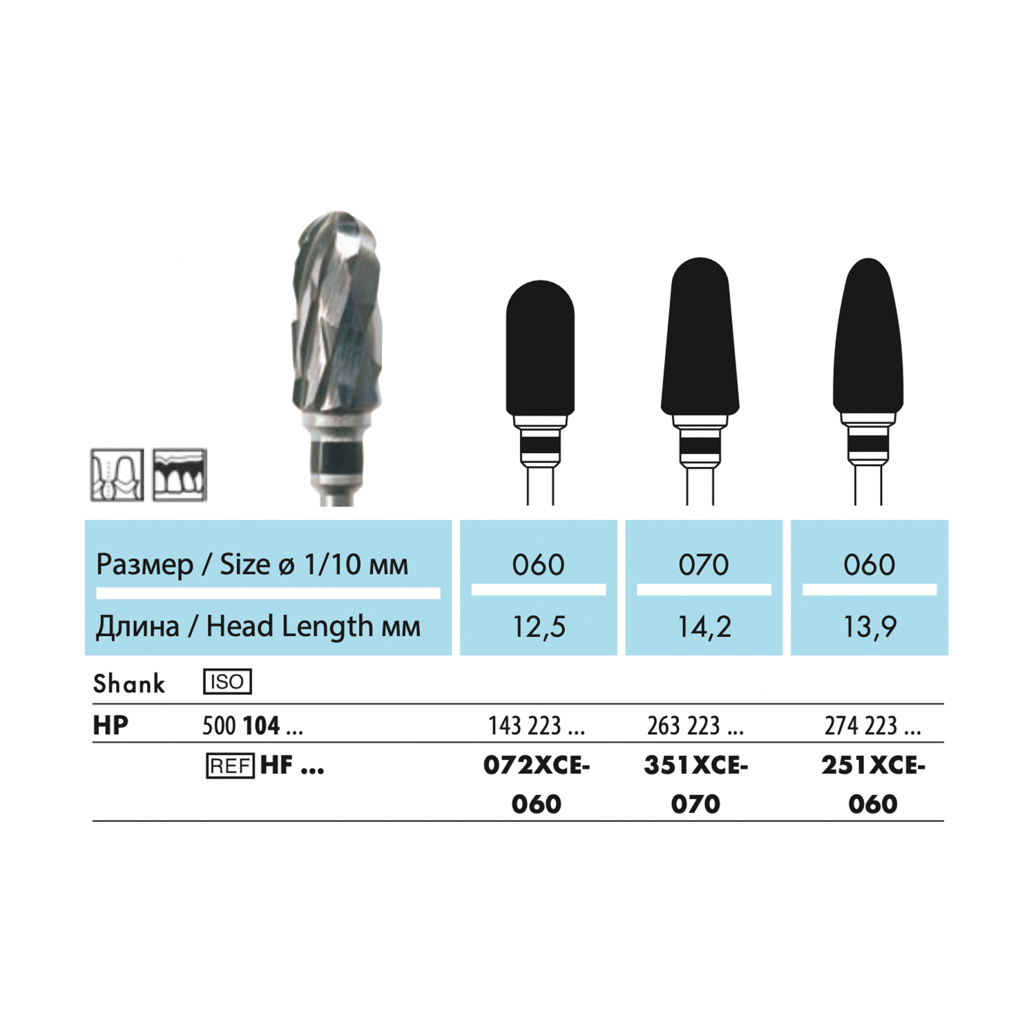 Фреза твёрдосплавная NTI (Германия) стоматологический инструмент (прямой наконечник) зуботехнической лаборатории, форма - граната крестообразная нарезка сверхгрубая.