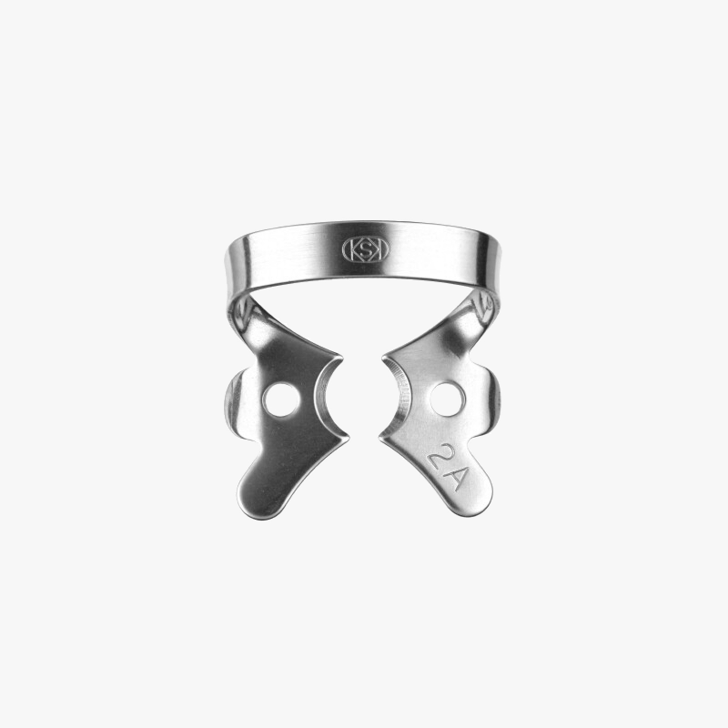 Кламп 2А предназначен для установки на верхние и нижние клыки и премоляры. В стоматологической практике применяется для зубов с незначительными разрушениями коронковой части, сохраненной ферулой и выраженным экватором. Аналогичен клампу 2, но большего размера.