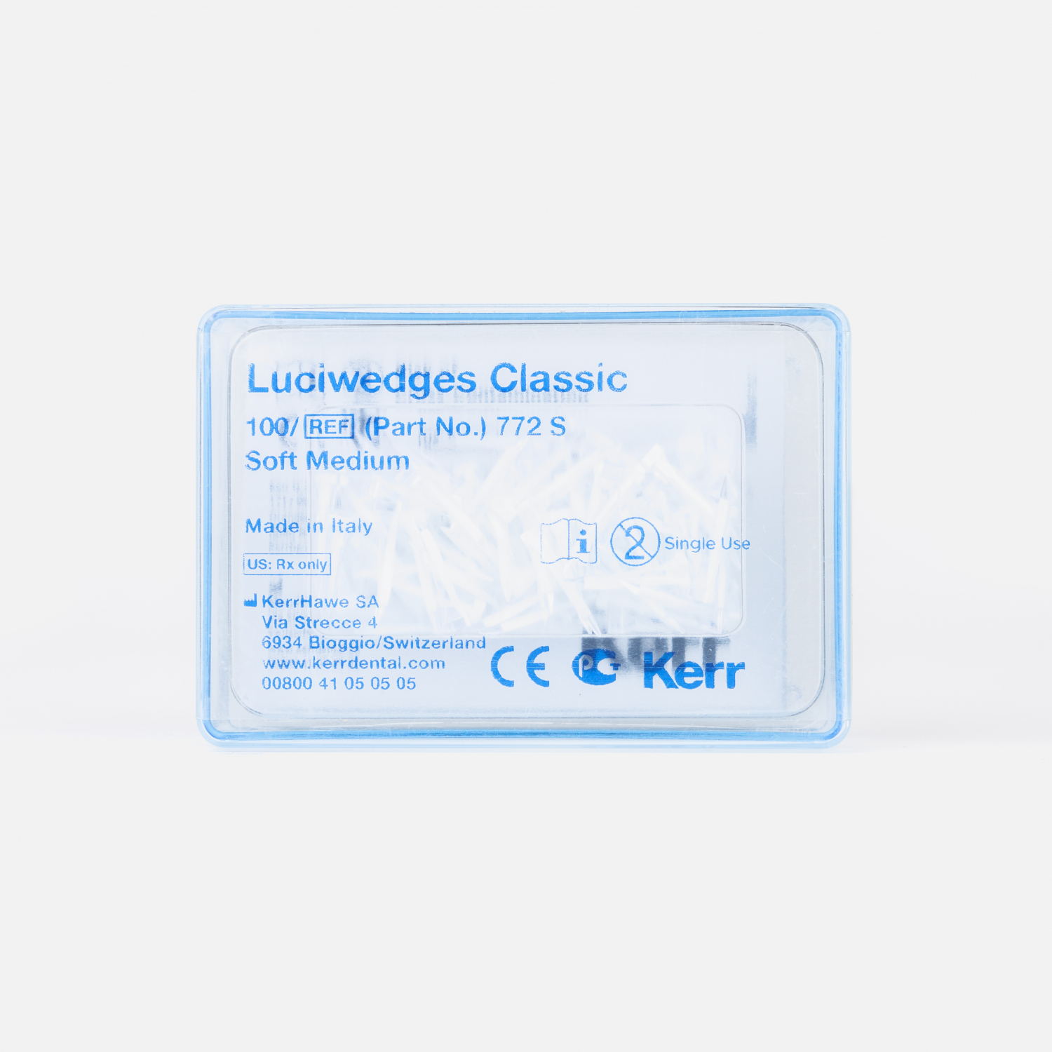 Клинья Kerr Hawe Adapt Luciwedge Soft светопроводящие средние артикул 772S предназначены для сепарации зубов и фиксации матрицы при проведении прямых реставраций или восстановления культи зуба под коронку. Они изготовлены из светопроводящего пластика и не препятствуют отверждению апроксимальных поверхностей восстанавливаемого зуба, выполненных из светоотверждаемых композитных материалов.