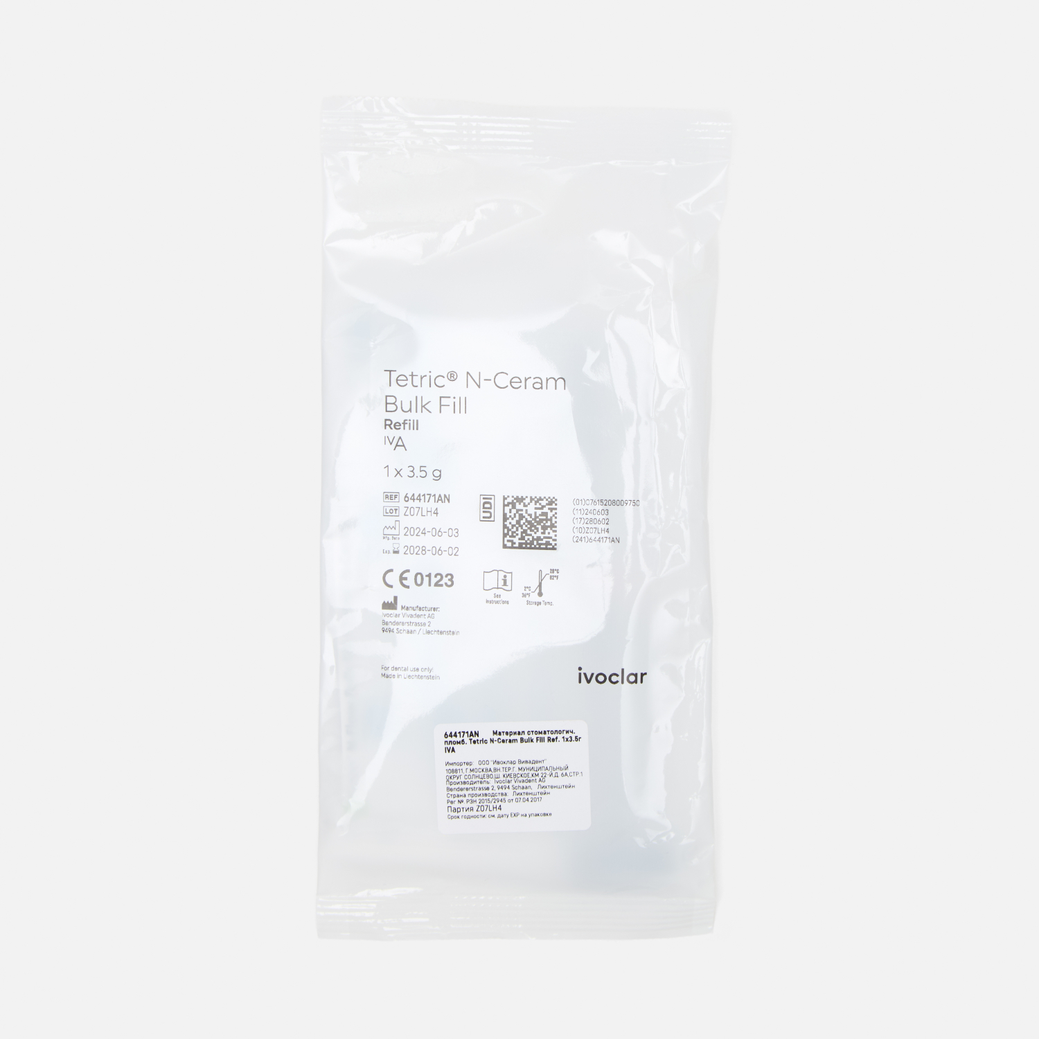 Tetric N-Ceram Bulk Fill позволяет реставрировать боковые зубы с помощью всего одного слоя толщиной до 4 мм, что значительно повышает эффективность. Запатентованный инициатор полимеризации Ivocerin обеспечивает полную полимеризацию материала. По сравнению с обычными инициаторами полимеризации, усилитель полимеризации Ivocerin химически гораздо более активен. Таким образом, полимеризация инициируется даже в глубоких полостях и материал полностью отверждается. Особым образом модифицированный компонент для снижения усадочного напряжения удерживает усадку и усадочное напряжение на минимальном уровне.