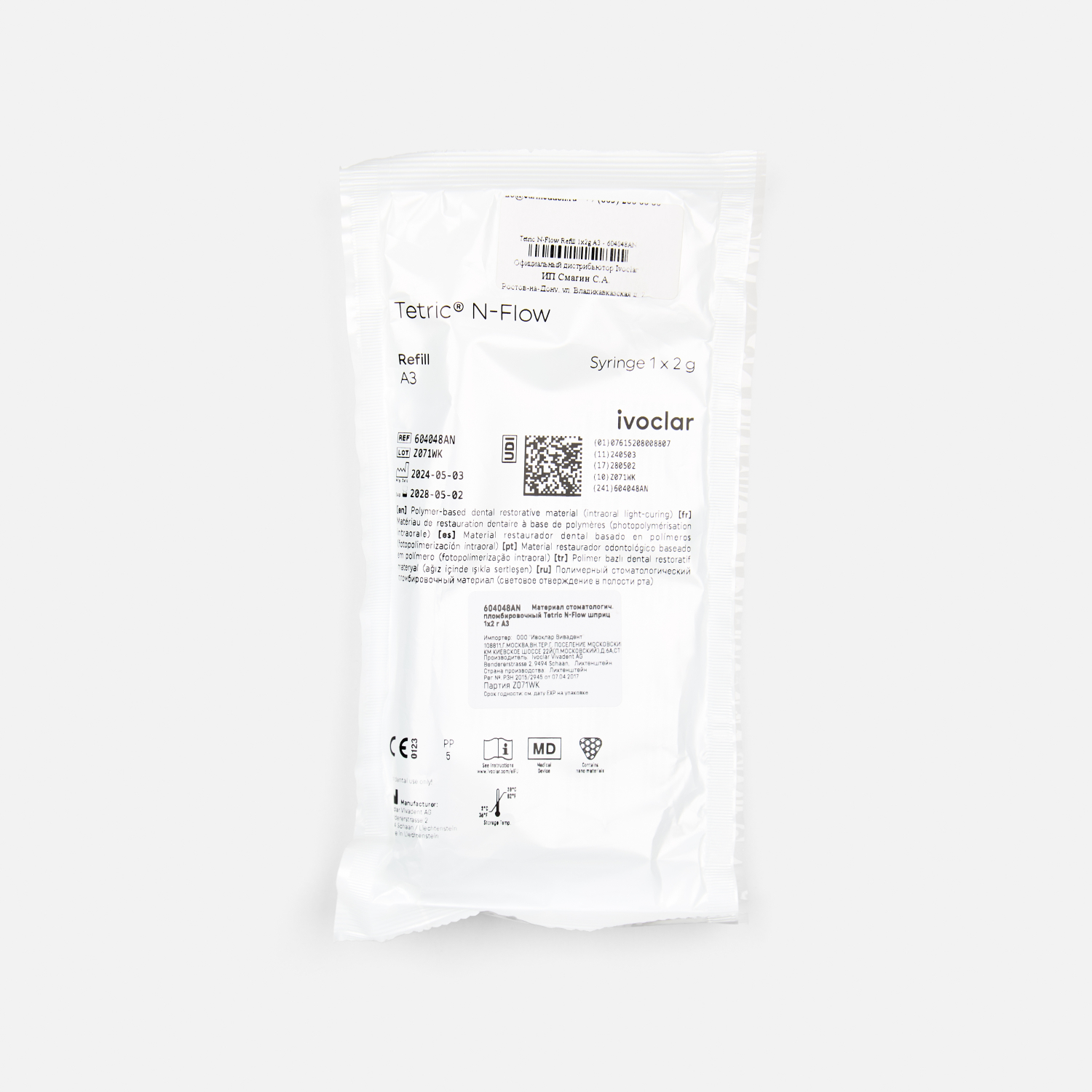 Материал композитный текучий Ivoclar Tetric N-Flow Bulk Fill обладает уникальными физико-механическими характеристиками. Этот наногибридный композит сочетает исключительную текучесть с высокой прочностью, позволяя заполнять полости слоем до 4 мм с полимеризацией по всей глубине.