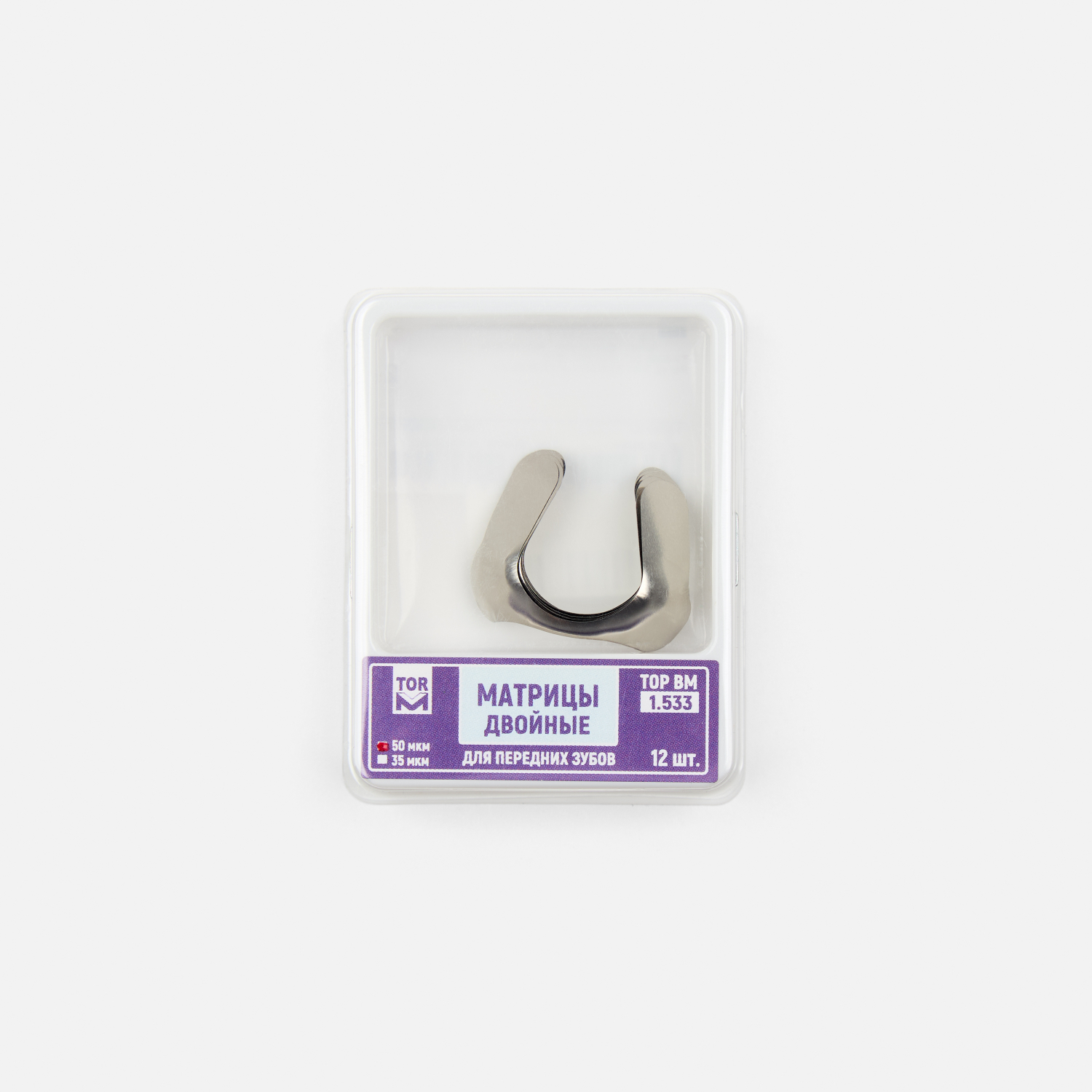Двойные матрицы ТОР ВМ изготовлены из нержавеющей стали и имеют правильную анатомическую форму, обеспечивая качественную реставрацию межзубных и пришеечных поверхностей зубов фронтальной группы.