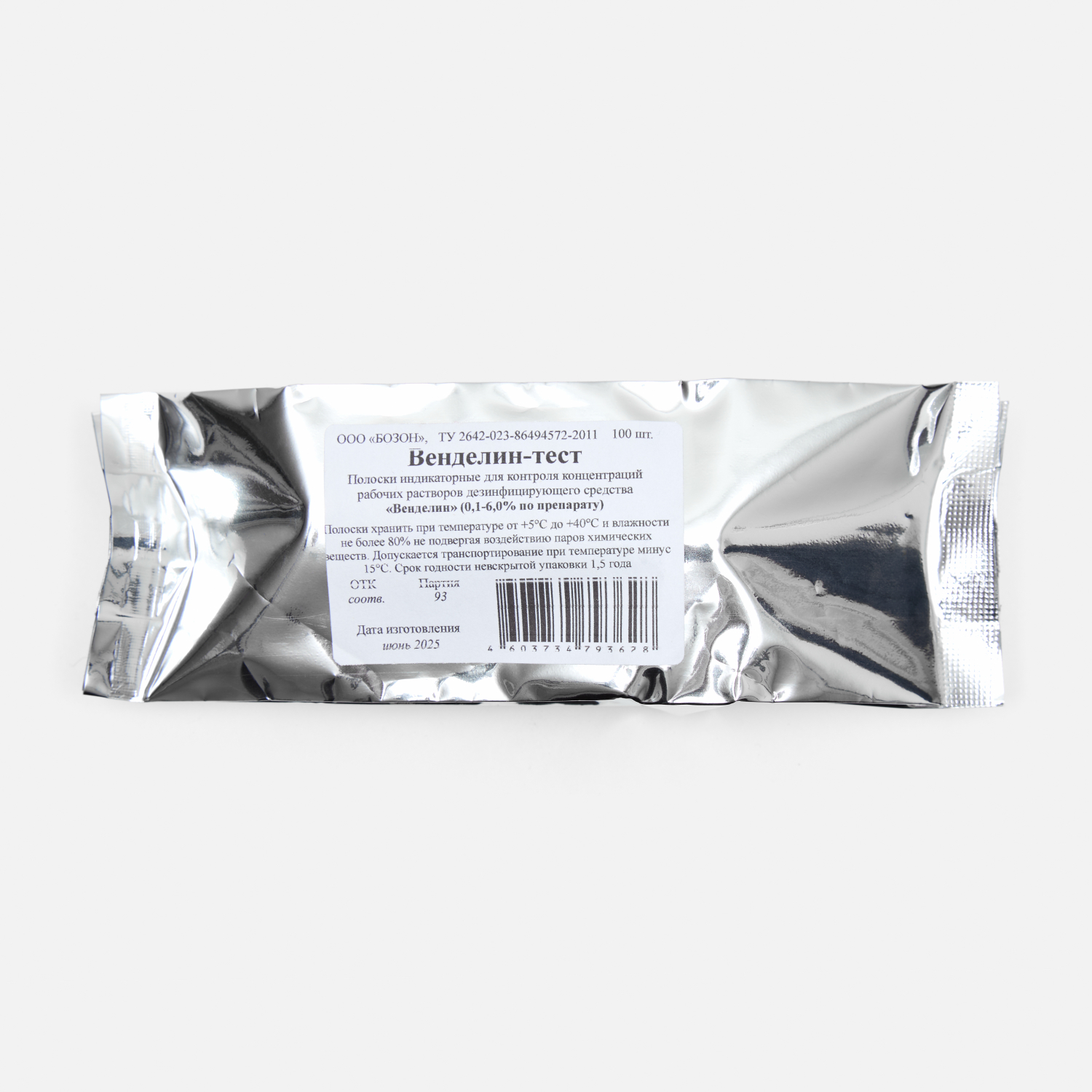 Полоски индикаторные Венделин-Тест предназначены визуального контроля качества проведения процедуры химической дезинфекции эндодонтических инструментов. Они применяются для точного определения концентрации и активности рабочего раствора Венделин.