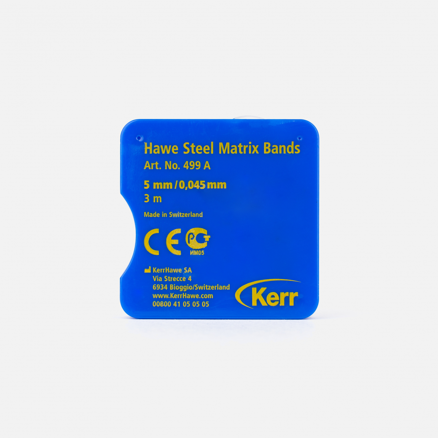 Матрицы в рулоне стальные Kerr Hawe Steel Matrix Bands артикул 499A толщина 0,045 мм., высота полоски 5 мм., длина ленты 3 м. - это удобный форм-фактор, позволяющий отмерять необходимую длину полоски для каждой конкретной клинической ситуации.