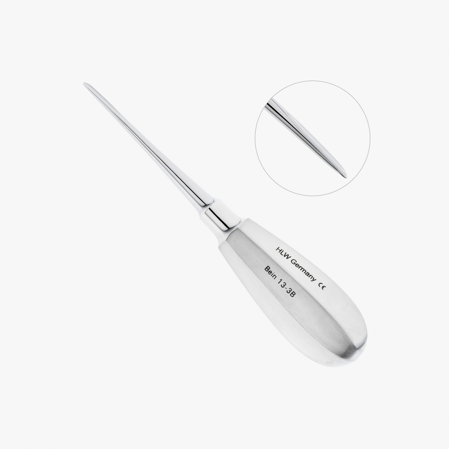 Рабочие части инструмента изогнуты по ребру под углом 90°, что дает возможность провести операцию по удалению корней на нижней челюсти, в том числе на труднодоступных участках в полости рта.