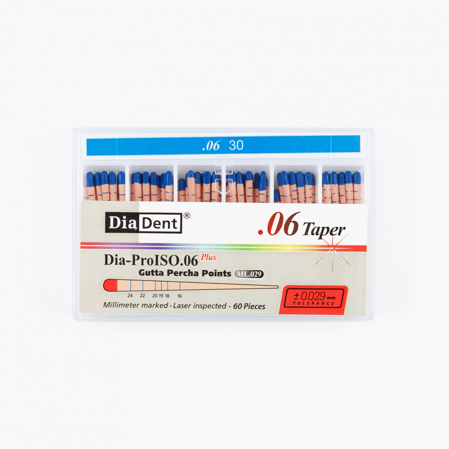 Штифты DiaDent 06 изготовлены из высококачественной натуральной гуттаперчи, которая обеспечивает биосовместимость, гибкость и долговечность. Их стандартизированный размер и конусность позволяют точно адаптироваться к форме корневого канала, обеспечивая равномерное заполнение и минимизируя риск образования пустот. Штифты легко вводятся и адаптируются к каналу, что делает их удобными в использовании.
