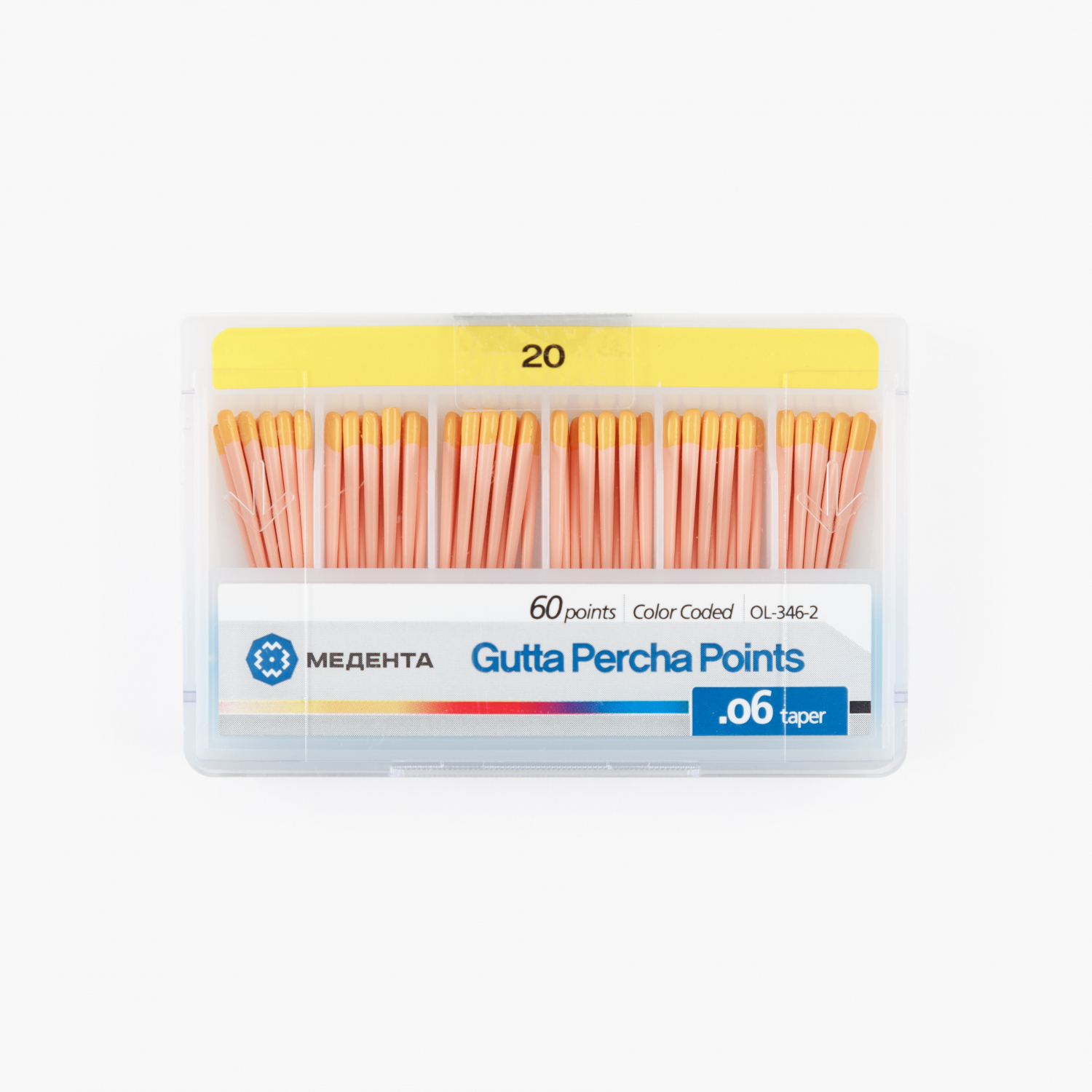 Гуттаперчевые штифты Meta размером 0.06 мм предназначены для постоянного пломбирования широких, хорошо проходимых каналов. Они особенно эффективны при лечении жевательных зубов с крупными корнями.