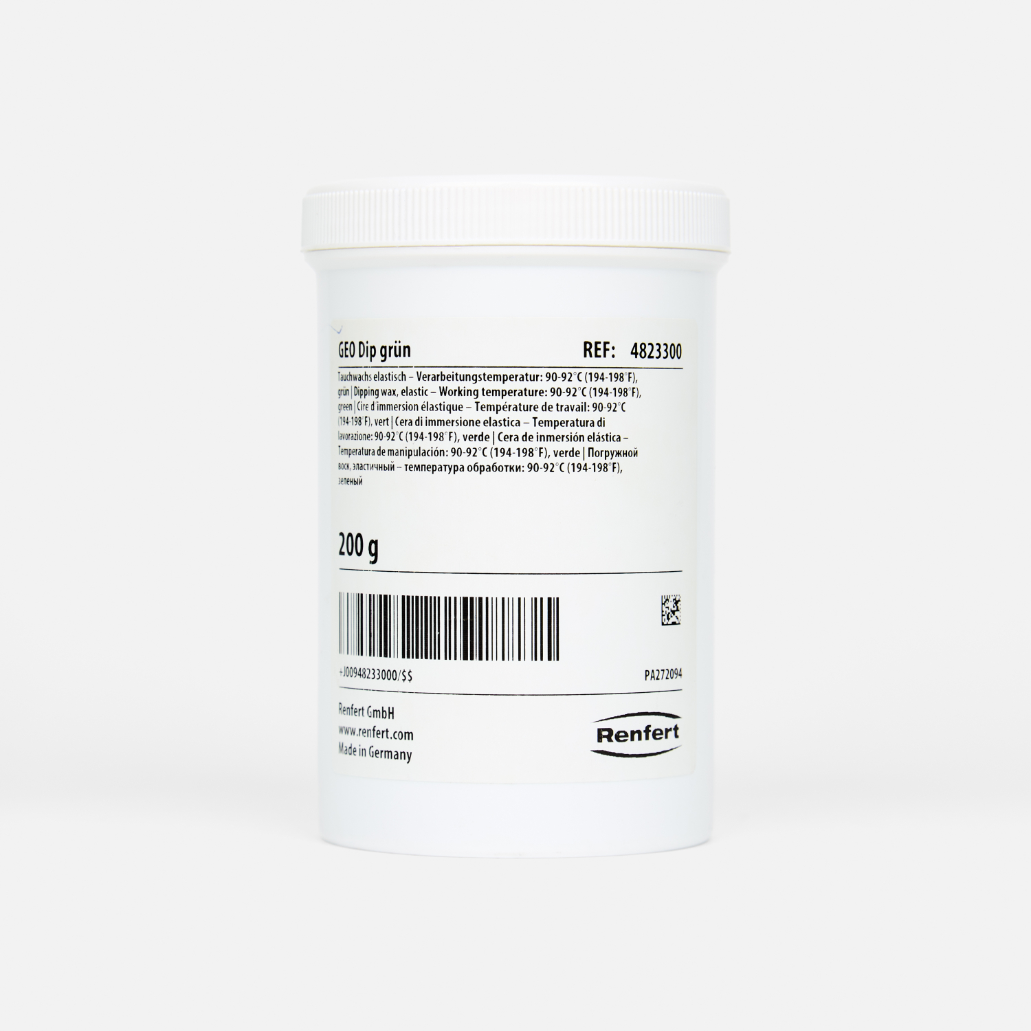 Мягкий погружной воск Renfert Geo Dip обладает уникальной рецептурой, обеспечивающей оптимальную вязкость и адгезию к гипсу, металлам и пластмассам, отличается повышенной пластичностью и эластичностью в расплавленном состоянии, что гарантирует легкое нанесение. После застывания материал образует прочное покрытие, которое легко поддается механической обработке – резке, шлифовке и коррекции с помощью стоматологических инструментов.